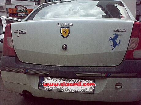 Putem observa finetea si talentul cu care a fost trecuta prin procesul de tuning, cu sigle Ferrari, litere de provenienta Autovit, inimioare, buze pe luneta, caluti, si desigur punctul culminant, praguri de pus pe interiorul usilor la BMW cu insemnele Motorsport, puse cu susul in jos ca par mai simpatice.